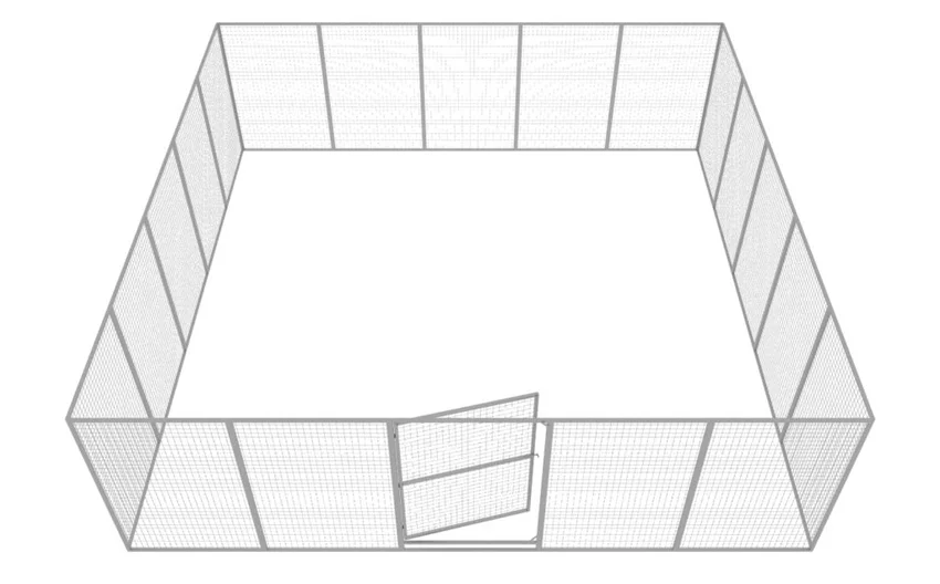 Hundgården levereras med 10 sektioner inklusive 1 dörrsektion, komplett med skruvar, muttrar och brickor för enkel montering. Vid behov kan fler sektioner eller dörrar läggas till för att anpassa gården efter tomtens utformning.