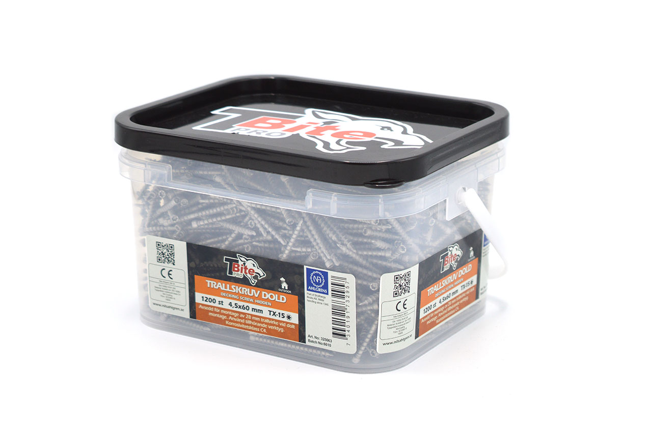 Avsedd för dolt montage av trall med hjälp av vårt montageverktyg.Skruven snedskruvas i trallbrädan och fäster den utan att synas från ovansidan, vilket ger en slät, estetisk och skonsam yta. Konstruktionen är utvecklad för att ge ett stabilt och långvarigt resultat utan synliga skruvhuvuden.