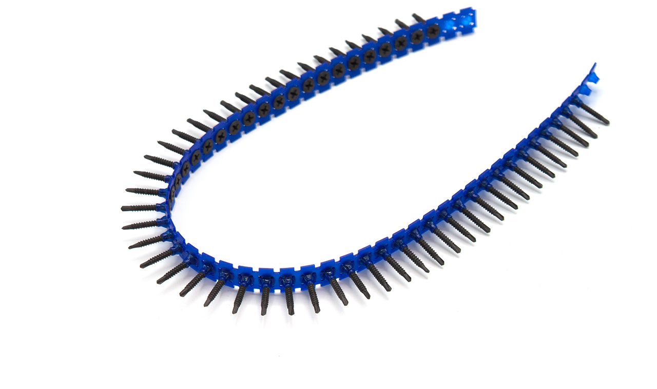 Funktion: Avsedd för montage av gipsskivor mot plåtregel max 0,9 mm. Skruven har en mycket vass spets som ger ett snabbt montage. Passar dom flesta rakbandade skruvautomater.
